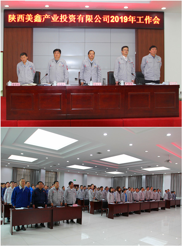 追趕超越奮進(jìn)新時(shí)代,擔(dān)當(dāng)實(shí)干展現(xiàn)新作為。4月3日上午,公司在二樓會(huì)議室召開了2019年工作會(huì)。會(huì)議深入學(xué)習(xí)貫徹了黨的十九大精神和集團(tuán)公司工作會(huì)精神,回顧總結(jié)2018年主要工作,安排部署2019年重點(diǎn)工作,為今年奮力前行統(tǒng)一思想、凝集共識(shí)、指明方向。公司領(lǐng)導(dǎo)班子成員,機(jī)關(guān)全體人員,各基層單位負(fù)責(zé)人,職工代表、監(jiān)理單位、設(shè)計(jì)單位、施工單位代表等,共計(jì)150余人參加了會(huì)議。會(huì)議由黨委副書記、紀(jì)委書記李書平主持。 黨委委員、副總經(jīng)理、總工程師元?jiǎng)倮髁祟}為《精心部署 真抓實(shí)干 — 全面開創(chuàng)公司高質(zhì)量高效益發(fā)展新局面》的工作報(bào)告。2018年,陜西美鑫公司全面貫徹十九大和習(xí)近平總書記系列重要講話精神及中央、省和集團(tuán)公司決策部署,在集團(tuán)公司的正確領(lǐng)導(dǎo)下,在各級政府大力支持下,緊緊圍繞全年目標(biāo)任務(wù),以破解發(fā)展不平衡不充分問題為導(dǎo)向,全力推進(jìn)各個(gè)項(xiàng)目施工建設(shè),狠抓生產(chǎn)經(jīng)營各項(xiàng)工作,安全、環(huán)保和穩(wěn)定工作平穩(wěn)發(fā)展,黨的建設(shè)得到全面加強(qiáng)。 全體人員奏唱《國歌》