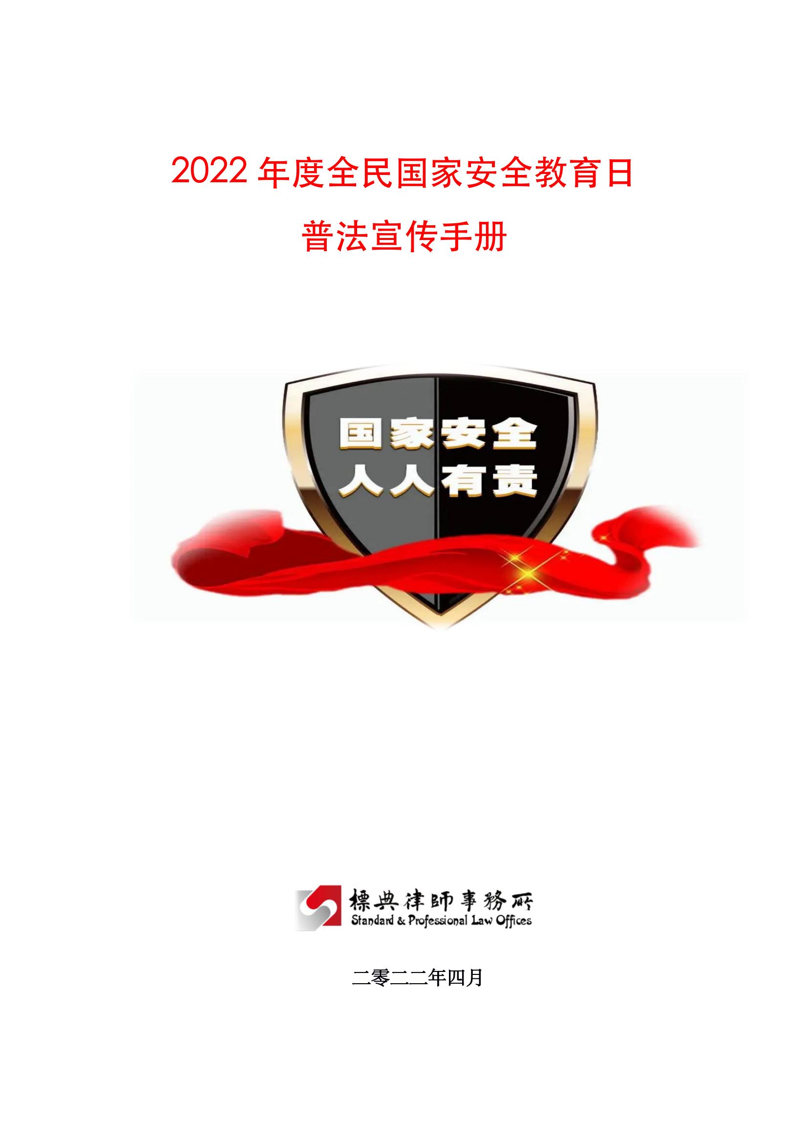 2022年度全民國家安全教育日普法宣傳冊(cè)